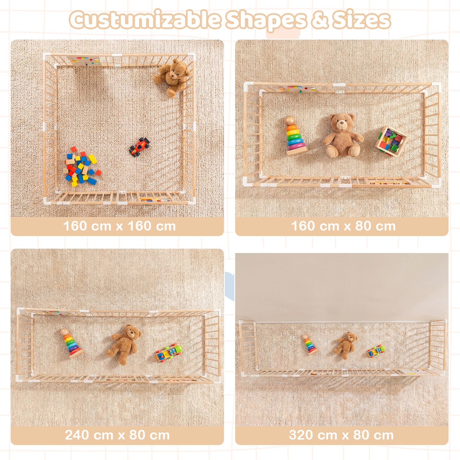 Wooden Adjustable Multi-Shape Baby Playpen for Infants and Toddlers