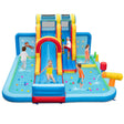 The water slide, splash pools and water cannon add an exciting element of play while the climbing wall challenge youngsters physically. A separate ball pit area, ring-toss, ball throwing and boxing column games help develop kids' motor skills and coordination. Crafted from 900D oxford cloth with double stitching, this water park presents long-lasting performance. Additionally, the protective wall offers added safety, allowing for breathability and visibility. The heightened handrails and a wide cushioned landing zone provide extra security and comfort for kids as they enjoy the various features. Designed for easy and quick inflation, this water slide sets up in moments, so you can turn any gathering into a memorable event.