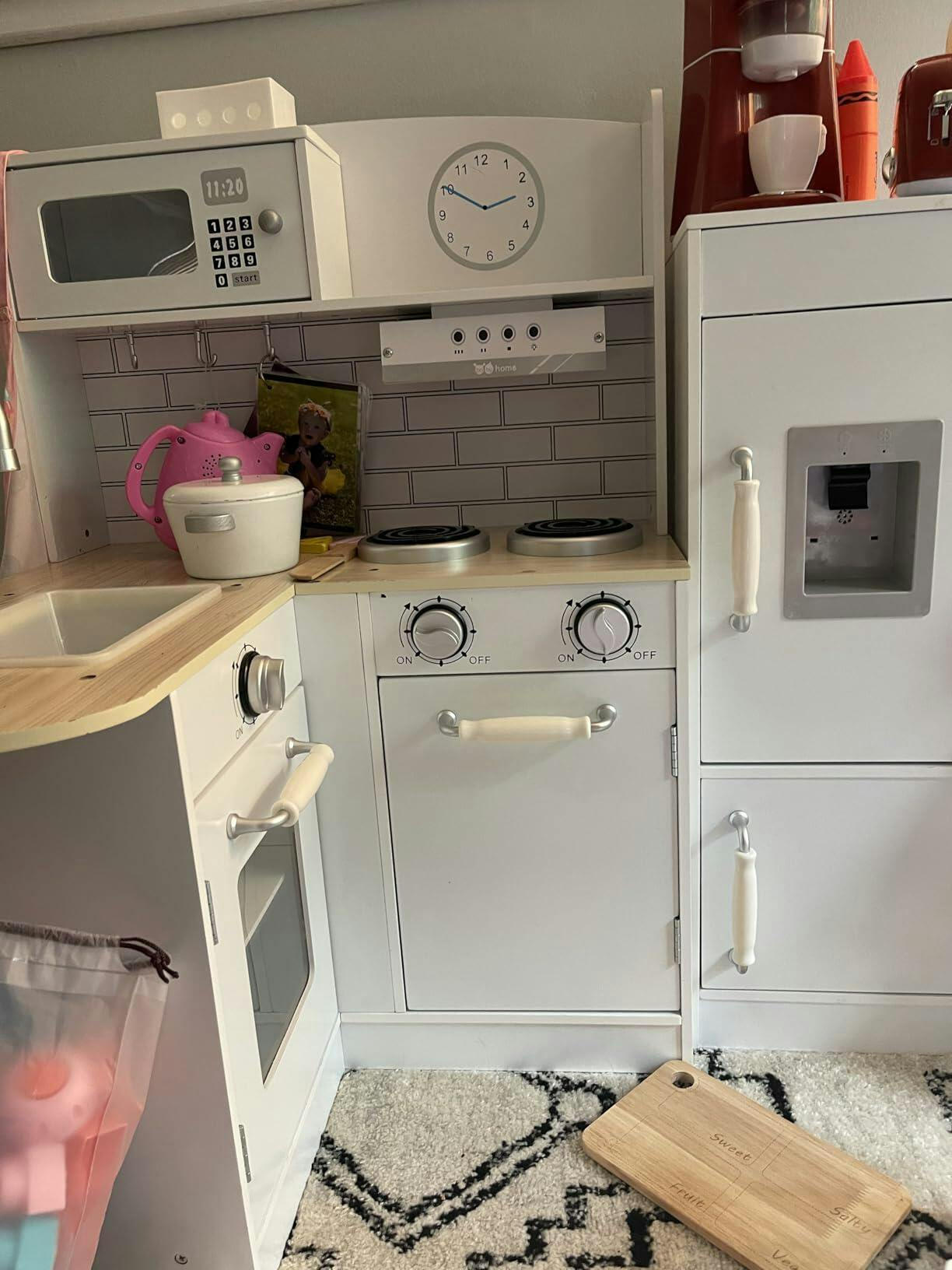 - Durable Material & Safe Design - Crafted from premium MDF with firm connection, this pretend kitchen play set ensures excellent stability and durability. Considering children's safety, the entire toy set is designed with rounded corners and burr-free edges.