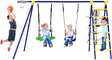 - 🎈5-In-1 Combo Swing Set: This multifunctional swing set includes 2 swing seat, 1 basketball hoop, 1 climbing ladder, and 1 climbing net, bringing an ultimate fun combination for your kids. What’s more, the height of 2 swings can be easily adjusted to meet kids’ different needs.