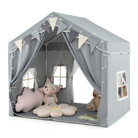 HONEY JOY Large Play Tent, Kids & Toddlers Playhouse with Washable Cotton Mat, Star Lights, Windows