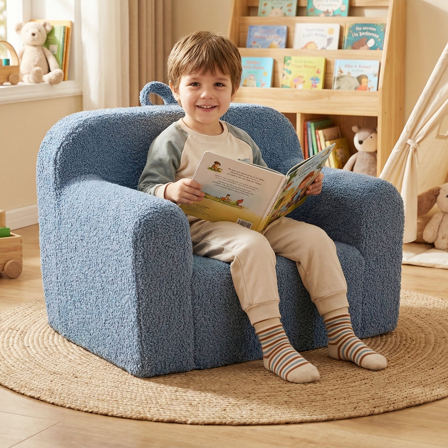 Wrapped in premium teddy fleece, the cover offers a plush, skin-friendly texture that is gentle and warm. The high-density foam core ensures the sofa maintains its shape and provides sturdy support. Lightweight and designed with a convenient carry handle, this sofa is easy for children to move around.