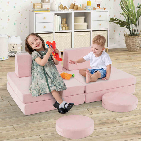 8-Piece Modular Kids Sofa Play Couch, Convertible Climb & Crawl Foam Playset with Comfy Suede Fabric