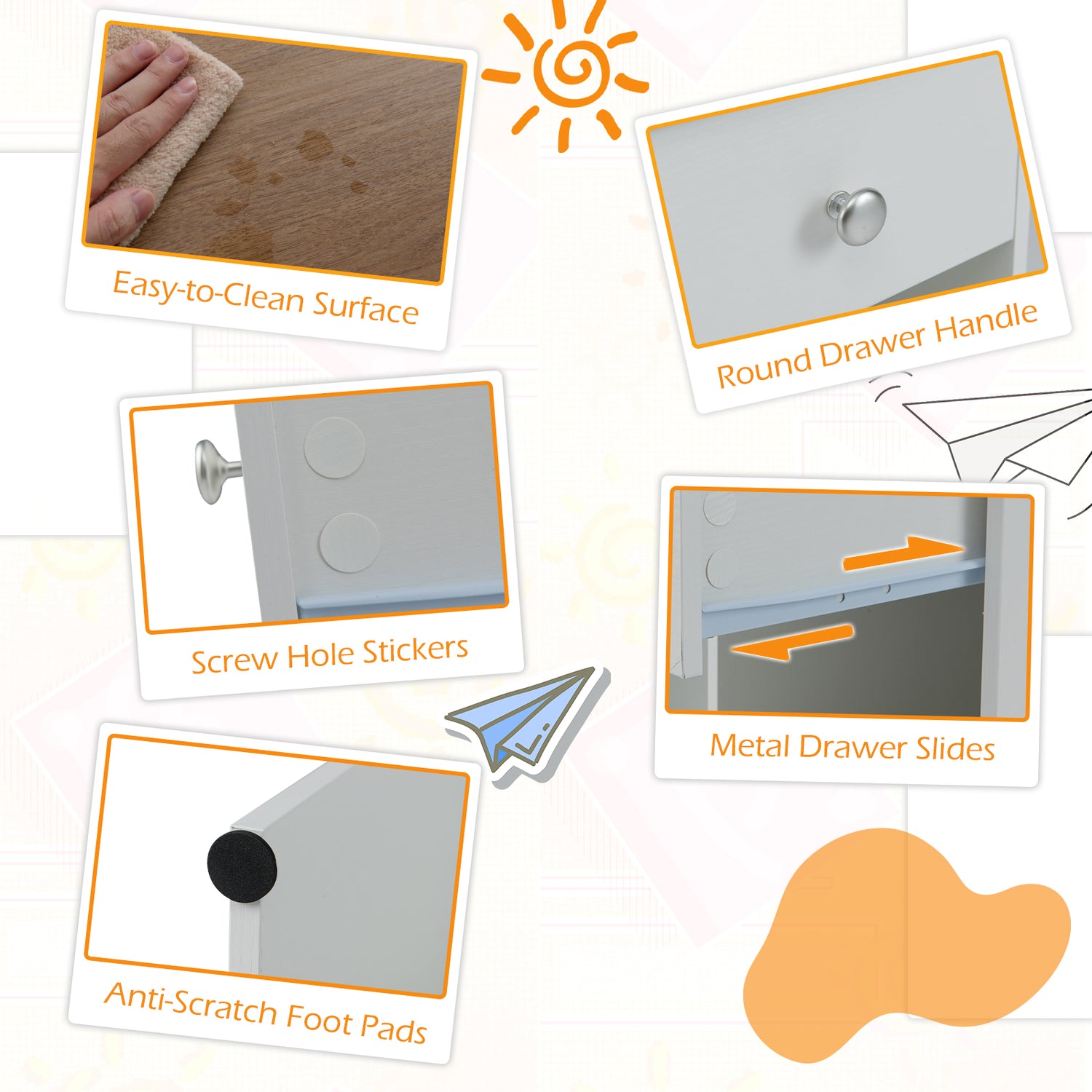 This kids desk is a versatile and functional workspace designed specifically for children. It offers ample storage space with a spacious tabletop, 1 large drawer and 2 open shelves and desktop hutch shelves, keeping the lamps, stationery, books, toys, and other decorations organized. This desk is a perfect classified storage solution, which helps kids develop good organizational skills. The desk's versatile design allows it to be used for various activities such as studying, drawing, crafting, and playing games. It is built with a safe and stable structure, featuring rounded corners and the anti-toppling device to prevent accidents. With its easy-to-clean surface and durable materials, the kids study desk in a novel style is a perfect gift for children.