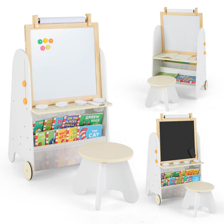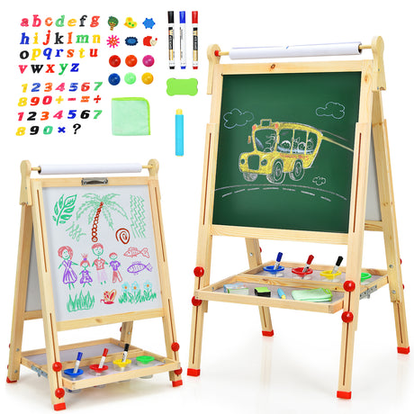 BABY JOY Kids Art Easel, Wooden Foldable Double-Sided Chalkboard Whiteboard w/Board Eraser