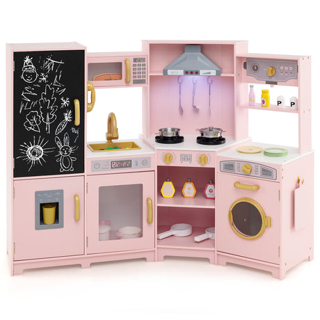 Corner Wooden Play Kitchen, Toy Kitchen Playset with Storage for Children 3+ Years Old