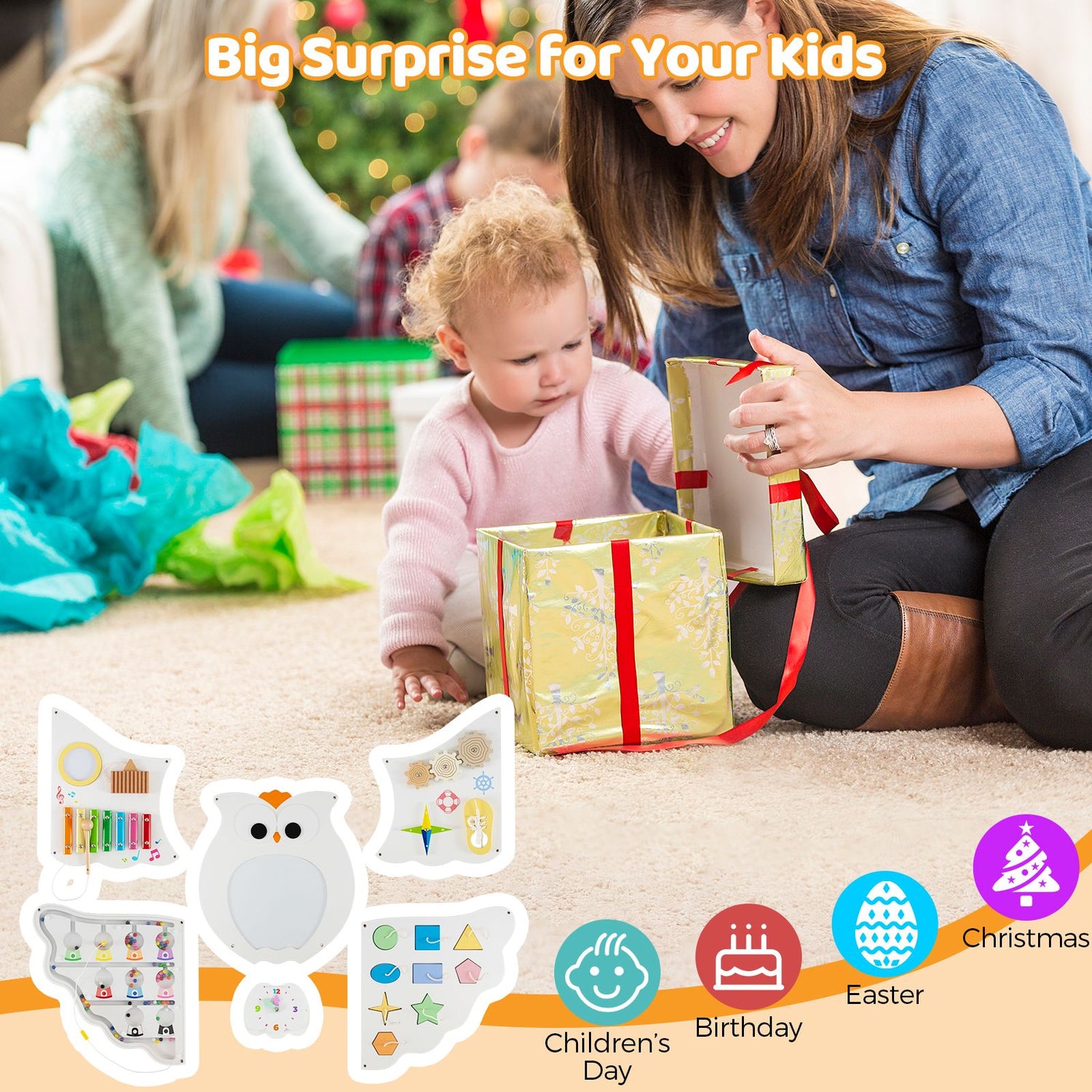11-In-1 Owl Activity Wall Busy Board Panels for Kids 3+ Years Old