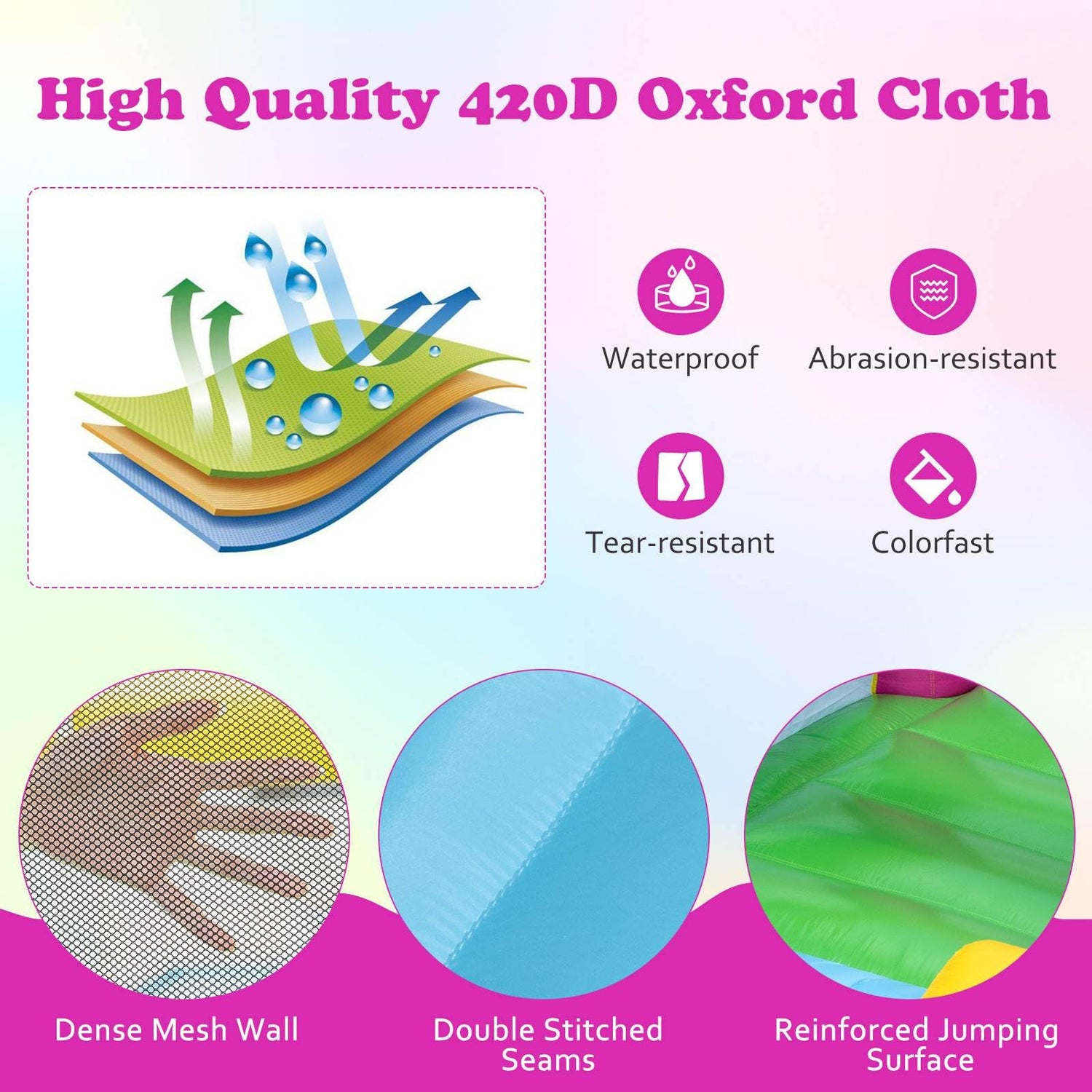 - High quality 420D Oxford cloth is waterproof and colorfast