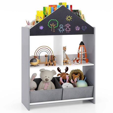 Playhouse Kids Bookshelf Wooden Toy Storage Organizer w/Chalkboard & Whiteboard