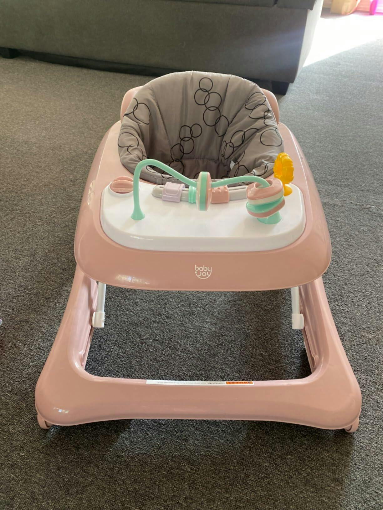 Pretty colour, and I like how the toys are simple and easy to take off. The seat is a bit shallow, but it does its job.