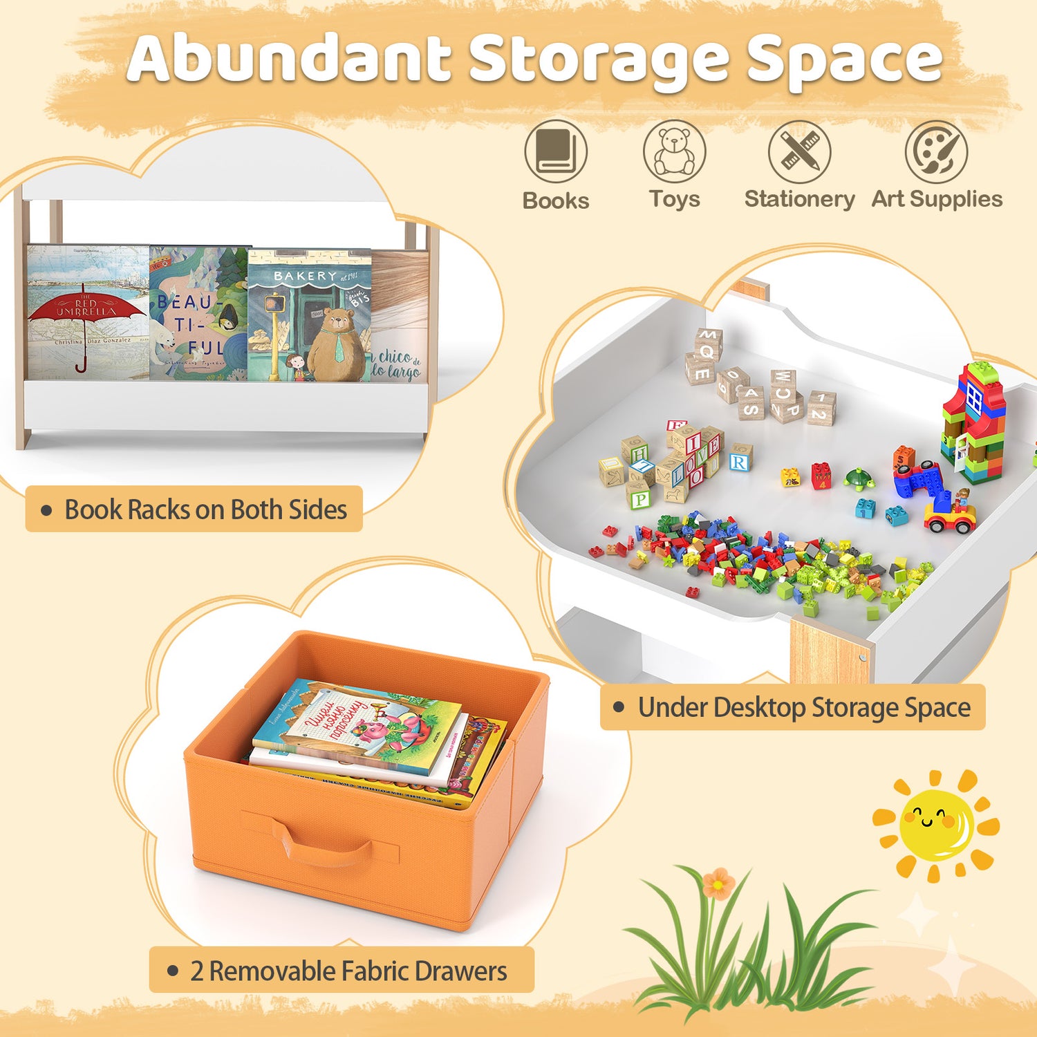 - Storage Solutions Galore: There's plenty of storage space under the table and 2 handy bookshelves near the legs. Plus, each chair includes a fabric drawer, ideal for storing art supplies, toys, and books. Keep your kid's play area neat and organized!