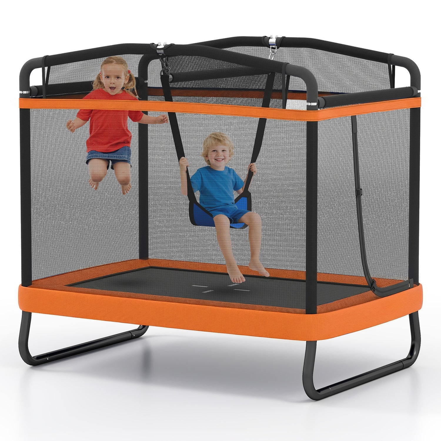 6 FT Kids Trampoline with Swing and Horizontal Bar, Small Rectangle Trampoline