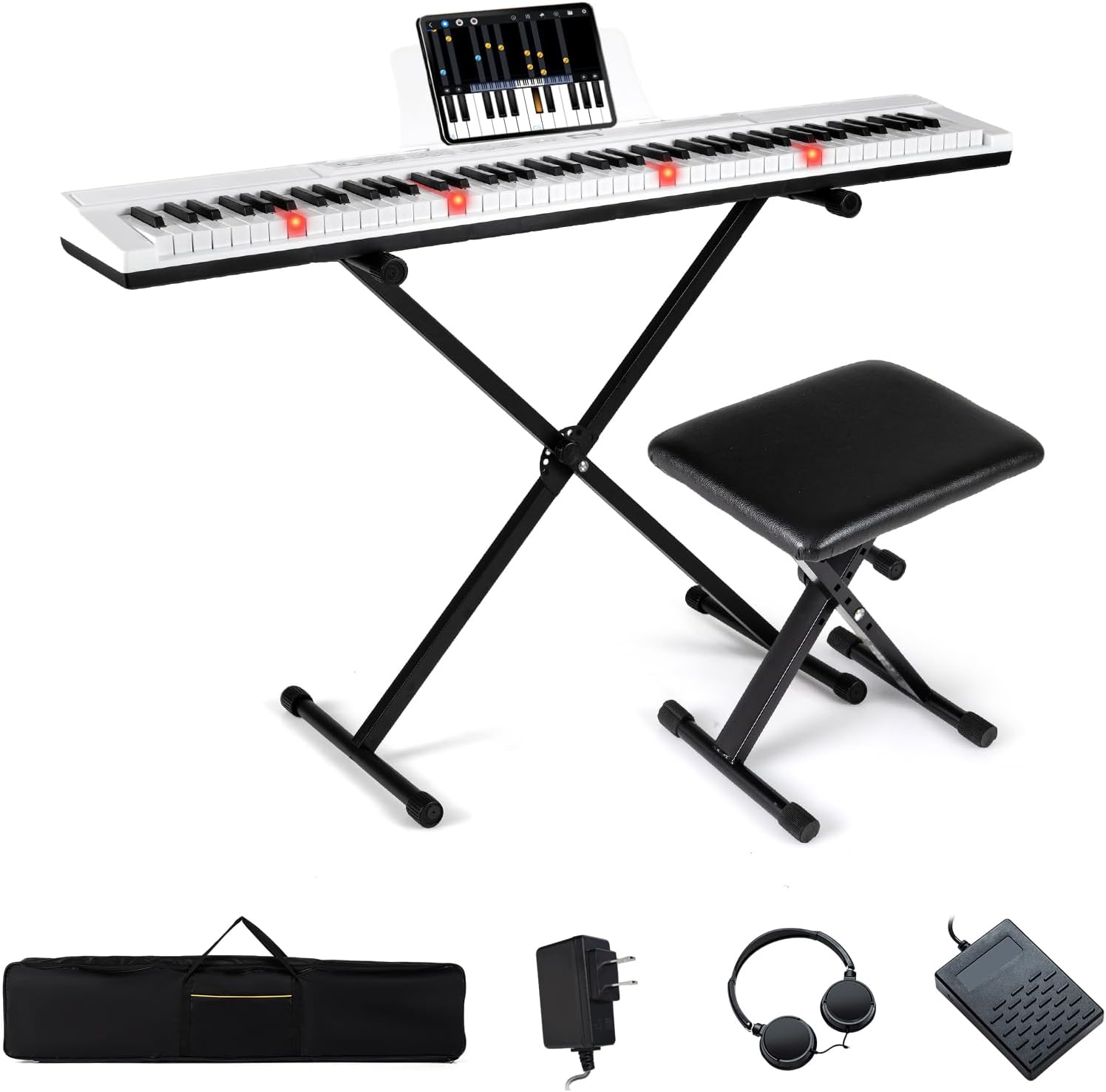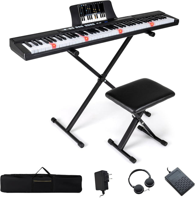 88-Key Electric Piano Keyboard, Digital Piano w/Adjustable Stand & Stool