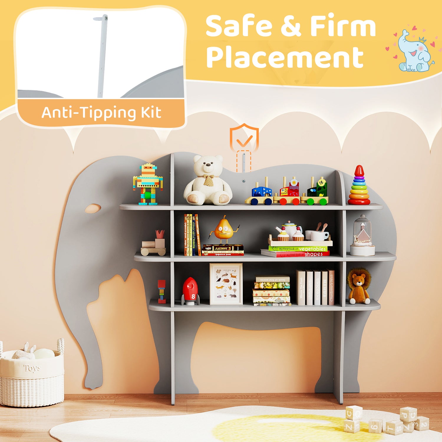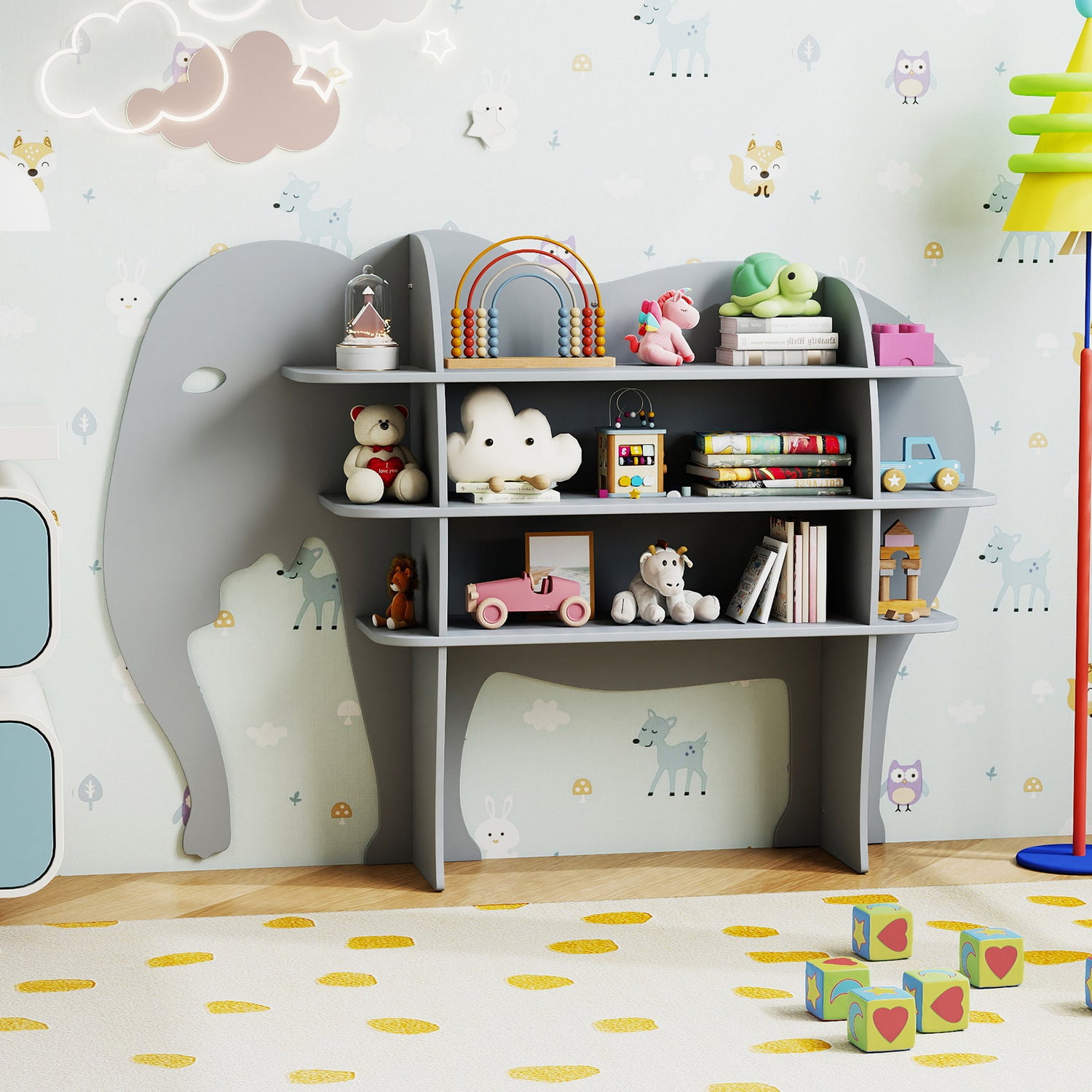 Elephant Kids Bookshelf, 3-Tier Toddler Bookcase for Toy Storage