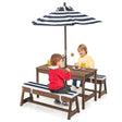 HONEY JOY Kids Picnic Table Bench Set, Wooden Kids Outdoor Furniture with Umbrella, Sponge Cushions