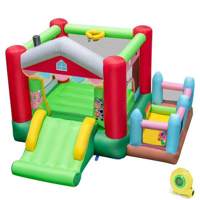 Inflatable Bounce House, 4-in-1 Farm Themed Jumping Castle with Slide
