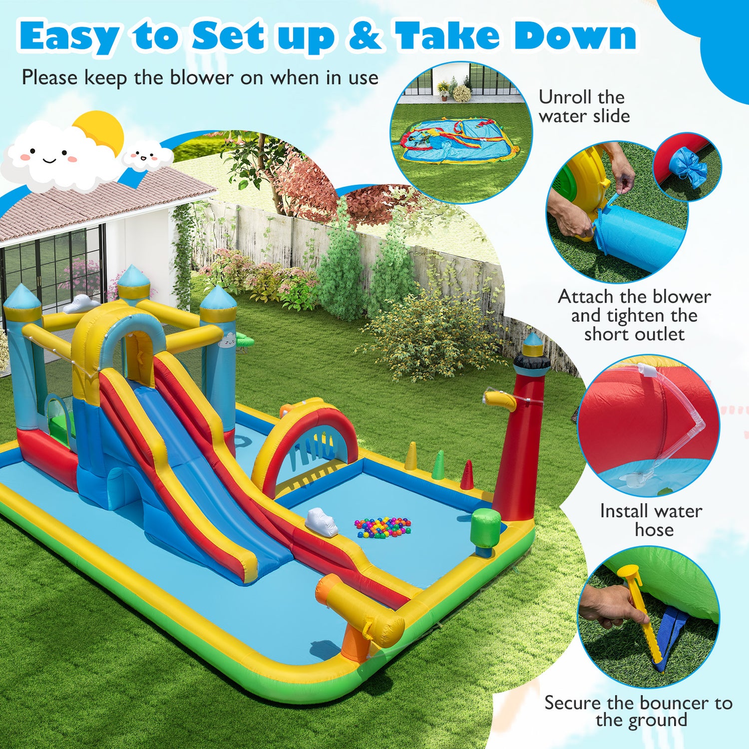 Inflatable Water Slide, Giant Water Park, Outdoor Wet & Dry Combo Bouncy for Yard Lawn