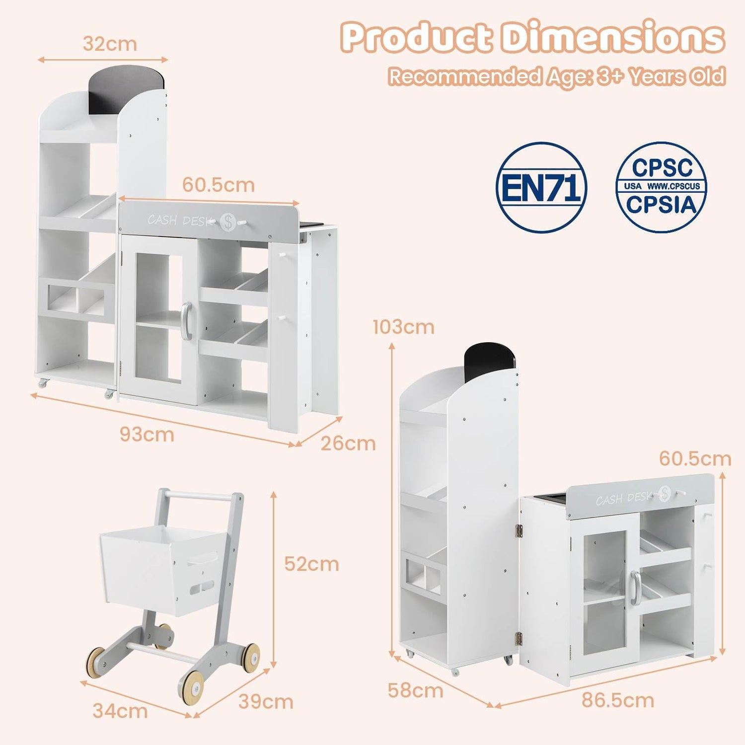 Kids Grocery Store Playset, Convertible Wooden Play Store with Shopping Cart